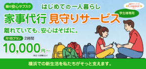 離れていても、安心はそばに。 春。 地方から横浜へ進学するお子様にとって、新しい生活のスタートです。しかし親御様にとっては、喜びと同時に、こんな心配があるのではないでしょうか。 はじめての一人暮らしは、自由で楽しい反面、 […]