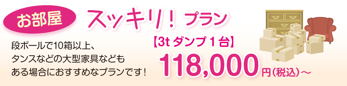 「お部屋」スッキリプラン【3tダンプ1台】118,000円(税込)〜